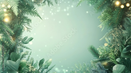 organic, circular, chaplet, composition, built, layered, forest, foliage, realistic, leaf, texture, natural, colours, variation, greenery, delicate, ivy, tendril, robust, fern, frond, wispy, pine, needle, all, rendered, botanical, precision, aethereal, bokeh, light, cool, white, pale, gold, create, illusion, sunlight, filtering, through, canopy, background, feature, subtile, gradient, green, mint