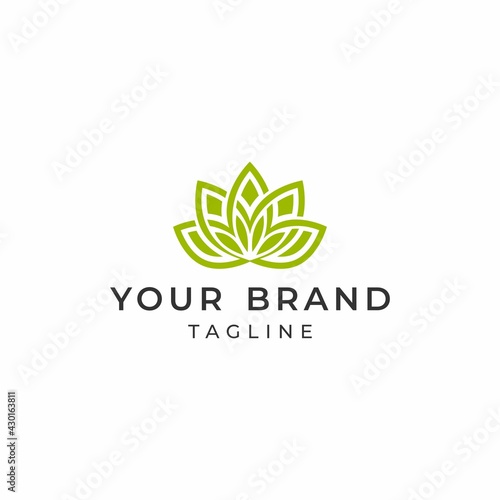 Organic leaf logo template, Yoga leaf lotus design vector illustration