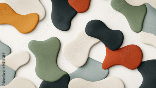 Organic shapes in muted paper textures with asymmetric lines on a soft grey background