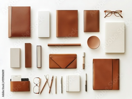 Organize your life minimalist leather personal organization system on pristine white geometric textures for a chic workspace