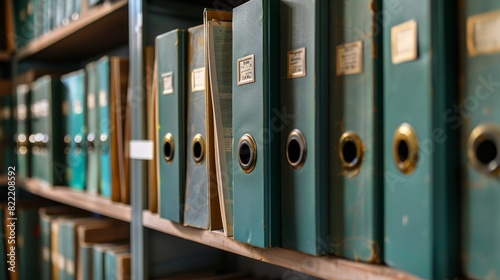 Organized archive folders within lockers, close-up shot for easy access, isolated background with studio lighting, highlighting the neat arrangement