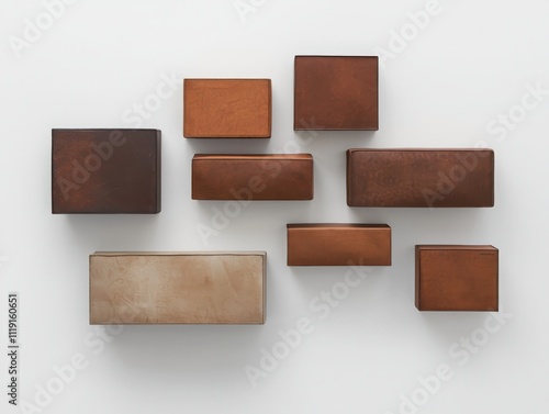 Organizing with leather minimalist system white textured background soft shadows geometric arrangement for modern spaces