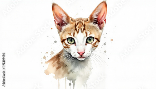 cat, watercolor, painting, green eye, art, colours, white background, splash, creativity, felino, cute, playful, pet, domestic, indoor, detailed, illustration, beauty, texture, artistic, modern, design, warm tones, bright, softness, nature, charme, sunlight, expression, face, whisker, ear, 1, captivating, optical, adorable, portrait, emotion, uniqueness, personality, aesthetic, contemporary, joyful