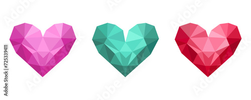 vector, illustration, art, graphic, design, origami, paper, three-dimensional, nubes, shape, colourful, high-coloured, many-coloured, heart, love, symbol, season, valentine, day, happiness, romantic, collection, texture, white, background, ornament, sample, template, decor, decoration, fashion, romance, card, valentine, diamond, crystal, gem, jewellery, precious, luxury, geometric, triangle, shiny, pink, red, blue green, gem