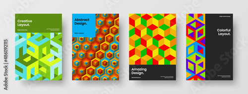 Original geometric shapes booklet concept bundle. Clean company cover vector design template composition.