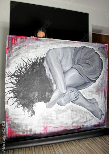 Original oil painting of depressive woman and author