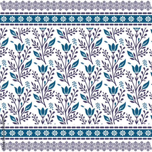 ornamental blue floral seamless pattern with vintage border for wallpaper and artistic projects