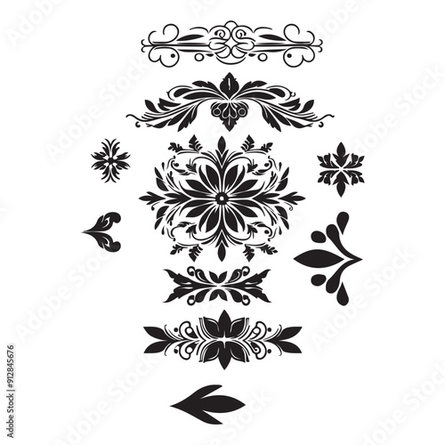 Ornamental Floral Motifs and Decorative Elements Vector Set Illustrator Artwork