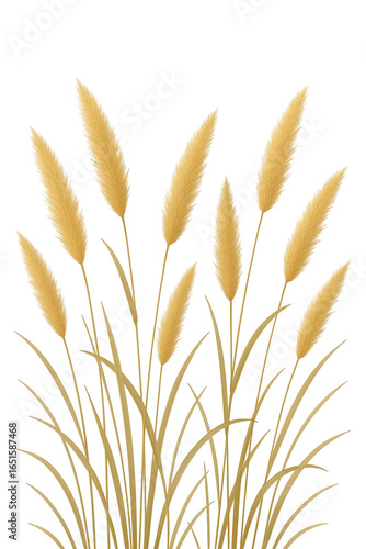 grass, gold, botanical, illustration, nature, plant, stem, plume, fluffy, elegant, decoration, design element, floral, garden, landscaping, autumn, fall, harvest, seasonal, wildflower, meadow, prairie, field, rural, country, environment, ecology, growth, beauty, colours, texture, pattern, isolated, cut-out, no people, vertical, closeup, detail, realistic, vibrant, serene, peaceful, calmness, simplicity, minimalism, graphic
