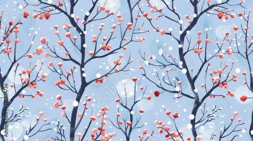 Ornamental tree pattern on light blue background for winter holidays concept