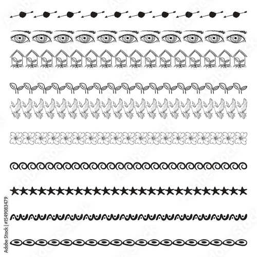 border, divider, pattern, tattoo, seamless, vector, ornamental, vintage, floral, tribal, arrow, eye, abstract, nature, hand-drawn, vignetting, minimalist, geometric, ink, graphic, repeat, ethnic, classic, design, monochrome, frame, outline, motif, horizontal, element, doodle, hibiscus, swirl, star, wing, leaf, bird, curve, symmetry, editable, retro, stylish, set, collection