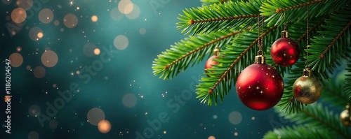 Ornamented palm fronds with sparkling garlands, ornaments, sparkles, winter