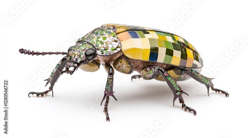Ornate Beetle, Artistic Mosaic Design, Isolated, Studio Shot