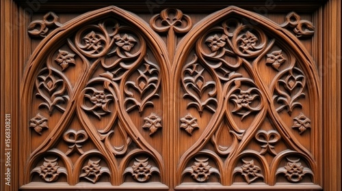 Ornate Carved Wooden Door with Floral Gothic Design, Door detail, Woodworking
