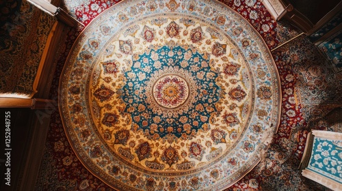 rug, ornate, pattern, cosy, room, furniture, design, texture, home, interior, decor, carpet, vintage, style, warm, aesthetic, traditional, craftsmanship, luxury, art, colourful, circular, detailed, heritage, comfort, elegance, ambience, textile, living, atmosphere, culture, beauty, unique, classic, rich, intricate, soft, inviting, layout, symmetry, artistry, space, visual, arrangement, hand-made, vibrant