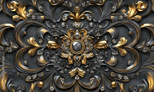 ornate, gold, black, grey, texture, gem, gem, stone, design, pattern, background, detail, carving, swirl, floral, elegant, luxury, dark, metallic, shine, glistering, abstract, decorative, relief, embossed, craftsmanship, art, style, vintage, baroque