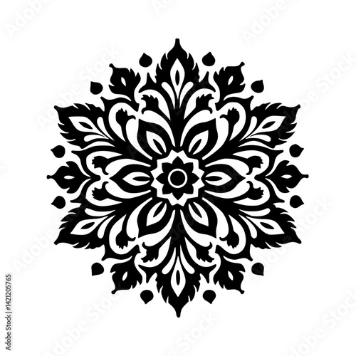 vector, mandala, floral, pattern, black, white, isolated, ornament, design, decorative, symmetric, elegant, botanical, graphic, flourish, art, spiritual, meditation, yoga, tattoo, stencil, template, textile, surface, illustration
