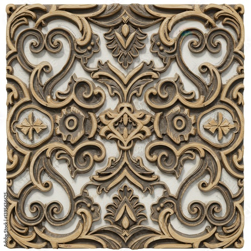 mandala, print, ornate, floral, pattern, beige, brown, square, tile, decorative, piece, design, vintage, carved, texture, detail, relief, element, style, motif, scroll, elegant, art, surface, shape, background, panel, classic, framework, structure, artwork