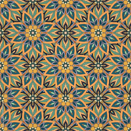 Ornate floral seamless texture, endless pattern with vintage mandala elements.