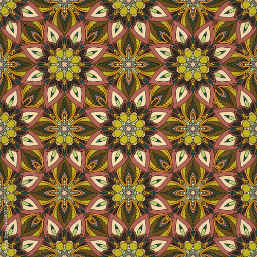 Ornate floral seamless texture, endless pattern with vintage mandala elements.