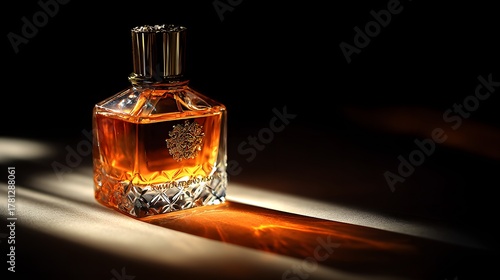 dramatic, stopper, perfume, rich, display, design, beautiful, clear, advertising, surface, expensive, carved, detail, still, cosmetic, fragrance, essence, marketing, square, container, life, amber, gold, composition, shadow, warm, bright, product, brown, liquid, sophisticated, illumination, bottle, dark, crystal, cap, light, opulent, scent, luxury, glamour, colourful, glasses, elegant, closeup, aroma, beauty