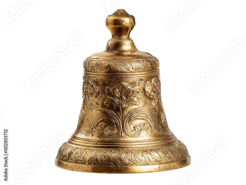Ornate gold bell antique brass bell vintage decor, Isolated On White Background, Png Transparent
