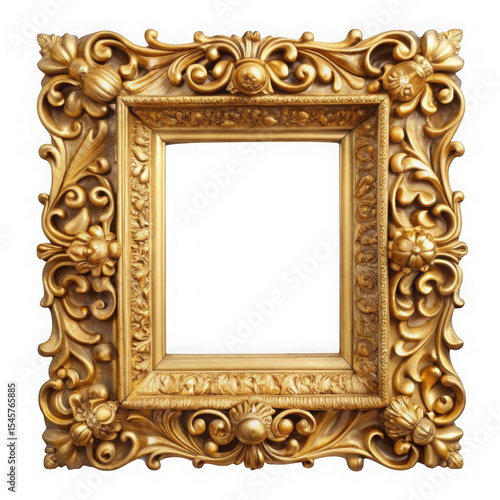 gold, frame, picture, ornate, decorative, antique, vintage, baroque, rococo, elegant, luxury, art, photo, isolated, transparent, background, clipping, path