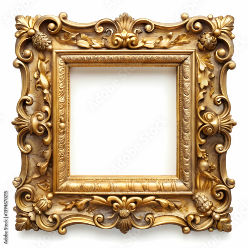 Ornate Golden Baroque Picture Frame Isolated on White"