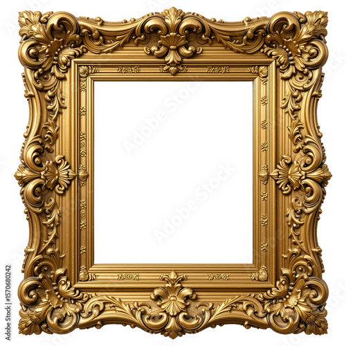 ornate golden baroque style empty picture frame with intricate decorative floral patterns