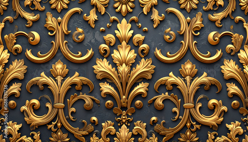 Ornate golden floral pattern on a dark textured background intricate and decorative.