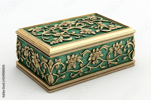 box, green, gold, ornate, carving, floral, flower, leaf, design, decoration, art, craft, wooden, jewellery, treasure, antique, vintage, elegant, luxury, beautiful, decorative, detail, intricate, handcraft, artistry, craftsmanship, pattern, style, texture, surface, frame, border, embossed, relief, background, object, container, storage, keepsake, precious, item, gift