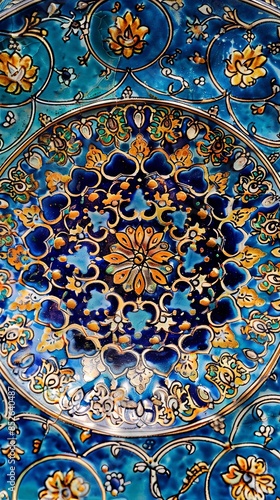 islamic, decorative, pattern, ceramic, plate, blue, gold, ornate, floral, luxurious, design, intricate, art, craftsmanship, decoration, heritage, culture, middle eastern, exquisite, detail, motif, aesthetic, traditional, beautiful, handcraft, decor, home, vintage, antique, collectable, unique, stylish, elegant, texture, cultural, artistic, gift, luxury