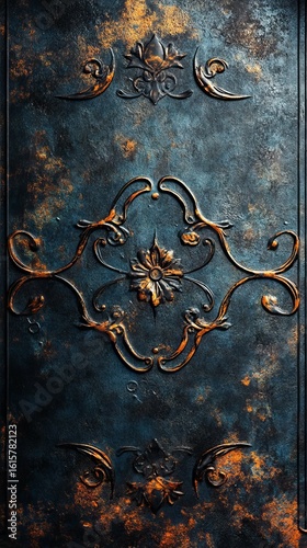 Ornate Metal Texture with Floral Ornament and Rust Detailing