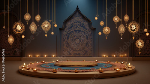 moroccan, stage, lantern, hanging, ornate, decorative, traditional, cultural, interior, design, architecture, lighting, illuminated, candlelight, festive, celebration, event, performance, theatre, ethnic, oriental, arabian, middle eastern, exotic, ambience, moody, dark, mysterious, intricate, pattern, mediterranean, ceremony, glowing, warmth