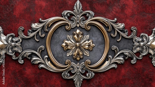 silver, gold, red, floral, ornate, design, background, decoration, frame, embellishment, pattern, filigree, swirl, flourish, scroll, intricate, elegant, luxurious, vintage, antique, classic, traditional, art, craft, texture, detail, craftsmanship, metal, polished, shine, sparkle, embossed, relief, symmetric, baroque, rococo, style, decorative, artistic, handcraft, beautiful, motif, delicate