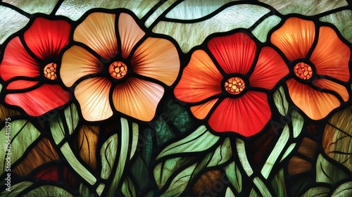 orange, colours, brown, early, floral, antique, beautiful, flower, detail, rich, high-coloured, glasswork, mosaic, vintage, bright, curve, pattern, art, nature, decorative, black, craftsmanship, window, sinuous, bold, design, green, stained, intricate, botanical, flower, geometric, glasses, closeup, patterned, red, yellow, texture