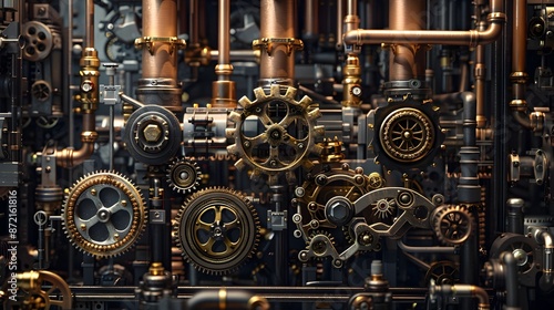 machinery, gear, cog, pipe, brass, industrial, engineering, schematic, technical, mechanical, intricate, detailed, antique, vintage, moody, gritty, urban, factory, contraption, component, aesthetic, background, abstract, design, pattern, mechanism, contraption, machine, metallic