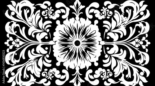 pattern, design, floral, ornament, symmetric, decorative, embellishment, foliage, texture, motif, intricate, detailed, art, ornamental, illustration, background, graphic, silhouette, black, white, symmetry, center, circle, ornamentation, patterned, leafy, frame, border, background, decoration
