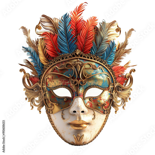 mask, venetian, carnival, costume, masquerade, party, celebration, disguise, fantasy, festival, feather, red, blue, gold, ornate, intricate, detailed, traditional, italian, culture, history, art, design, decorative, elegant, glamourous, beautiful, mysterious, playful, fun, vintage, theatrical, dramatic, fashion, accessory, face, eye, nose, mouth, lip, white, background, isolated