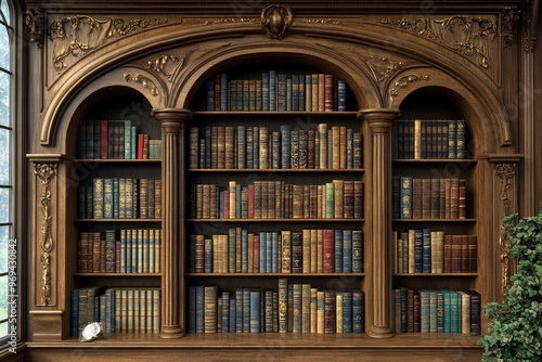 bookshelf, wooden, ornate, antique, book, arched, classic, literature, history, brown, gold, library, interior, vintage, reading, cognition, education, wood, shelf, carved, detailed, elegant, grand, rich, dark, shadow, room, home, design, style, traditional, formal, decor, old, paper, volume, collection, organised, book, bookcase, shelf, school, university, bookshop, learning, study