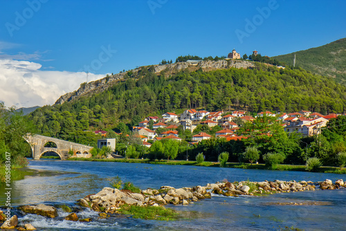 church, architecture, travel, bridge, view, landscape, hill, tour tourism, bosnia, monastery, culture, summer, city, landmark, outdoors, europa, building, orthodox, attraction, religion, river, historic, holiday maker, nature, ancient, christianity, heritage, faith, vacation, trip, bosnia, temple, herzegovina, history, old, mediterranean, city landscape, journey, mountain, climate, hiking, vinery