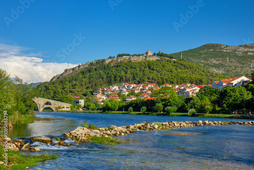 church, architecture, travel, bridge, view, landscape, hill, tour tourism, bosnia, monastery, culture, summer, city, landmark, outdoors, europa, building, orthodox, attraction, religion, river, historic, holiday maker, nature, ancient, christianity, heritage, faith, vacation, trip, bosnia, temple, herzegovina, history, old, mediterranean, city landscape, journey, mountain, climate, hiking, vinery