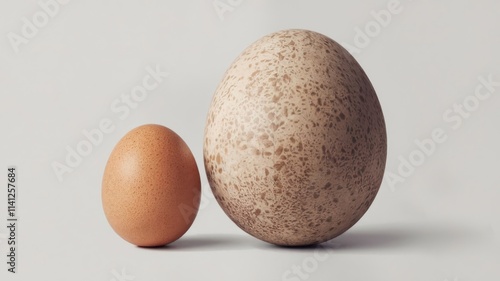 Ostrich egg and chicken egg side by side, isolated on white background, highlighting egg size