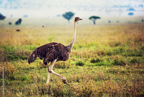 Ostrich on savanna, safari in Tanzania, Africa. Safari