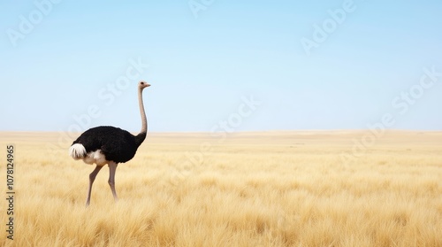 ostrich, savanna, wildlife, nature, graceful, landscape, grass-land, bird, wild, open, natural, environment, sunny, blue skies, majestic, feather, tall, solitary, habitat, scenic, outdoors, huge, undisturbed, peaceful, calm, expansive, yellow grass, african, serenity, freedom, native, isolated, calmness, earth, untouched, deserted, photo, panorama, horizon, quiet