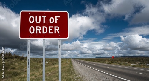 out of order text on road sign with clouds and sky background