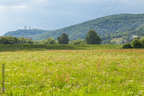 landscape, field, sky, meadow, green, nature, grass, blue, summer, spring, agriculture, countryside, flower, rural, krakau, pasture, hill, yellow, farm, country, cloud, flower, cloud, tree, mountain, hill