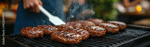 Outdoor Barbecue Grilling with Burgers on the Grill