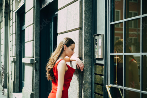 woman, dress, people, person, girl, attractive, trendy, brunette, style, female, lovely, pretty, sexy, beauty, posing, portrait, city, cute, cool, face, sensual, model, confident, fashionable, elegance, young, vintage, enjoyment, colourful, red, looking, honed, human, beautiful, happiness, enjoy, positive, romantic, lady, nice, mood, slim, lifestyle, emotion, colours, adult, 1, modern, casual attire
