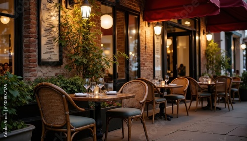 eatery, patio, cafes, dining, table, chair, bistro, evening, light, ambience, warm, city, brick, plant, vine, window, drink, food, decor, charming, rustic, modern, cosy, elegant, guest, lunch, romantic, relaxing, service, client, business, travel, vacation, tour tourism, life events, luxury, posh, epicure, delight, stylish, fashionable, sophisticated, person, urban, city landscape, view